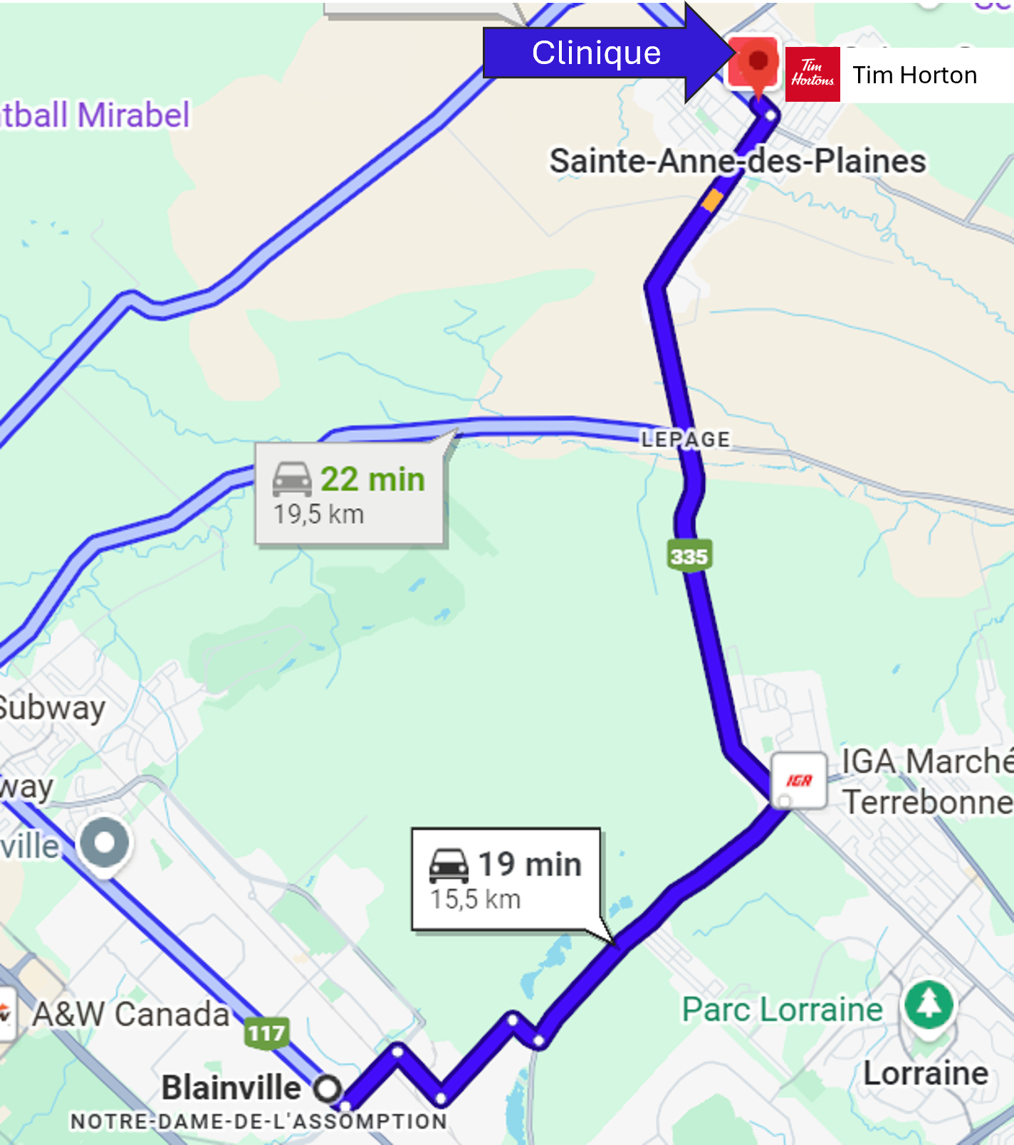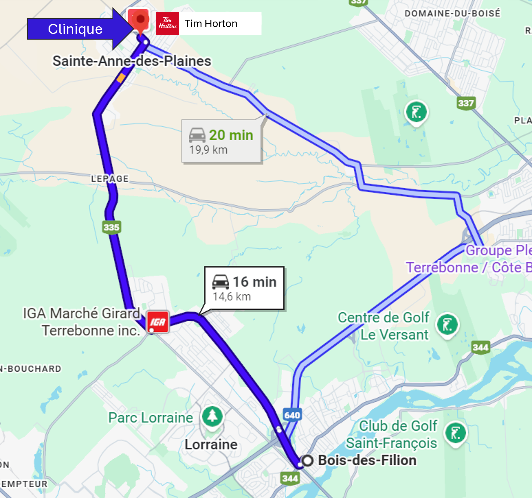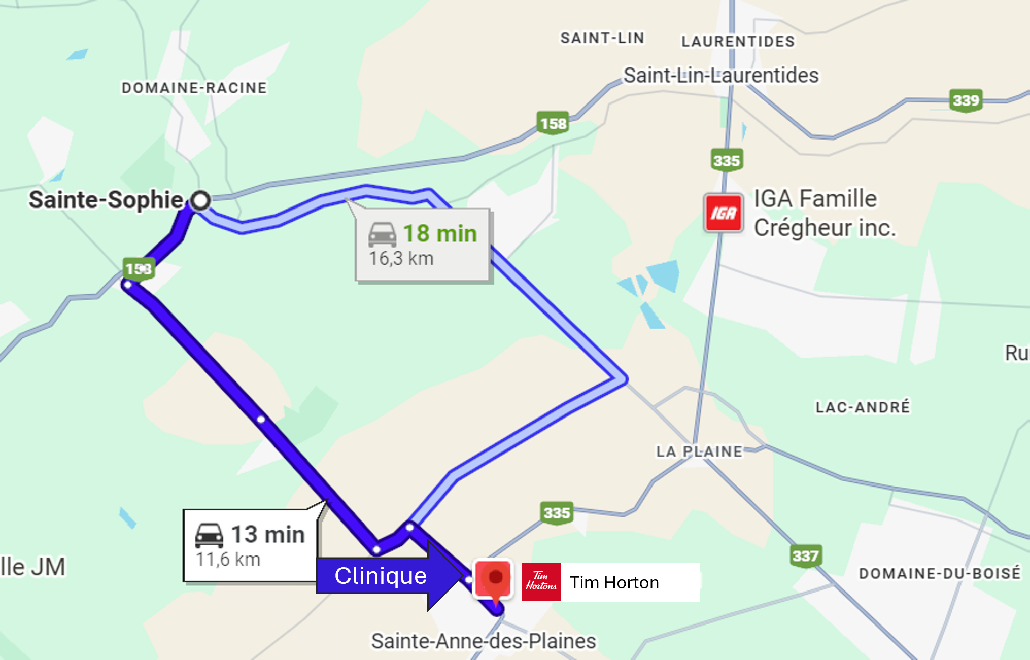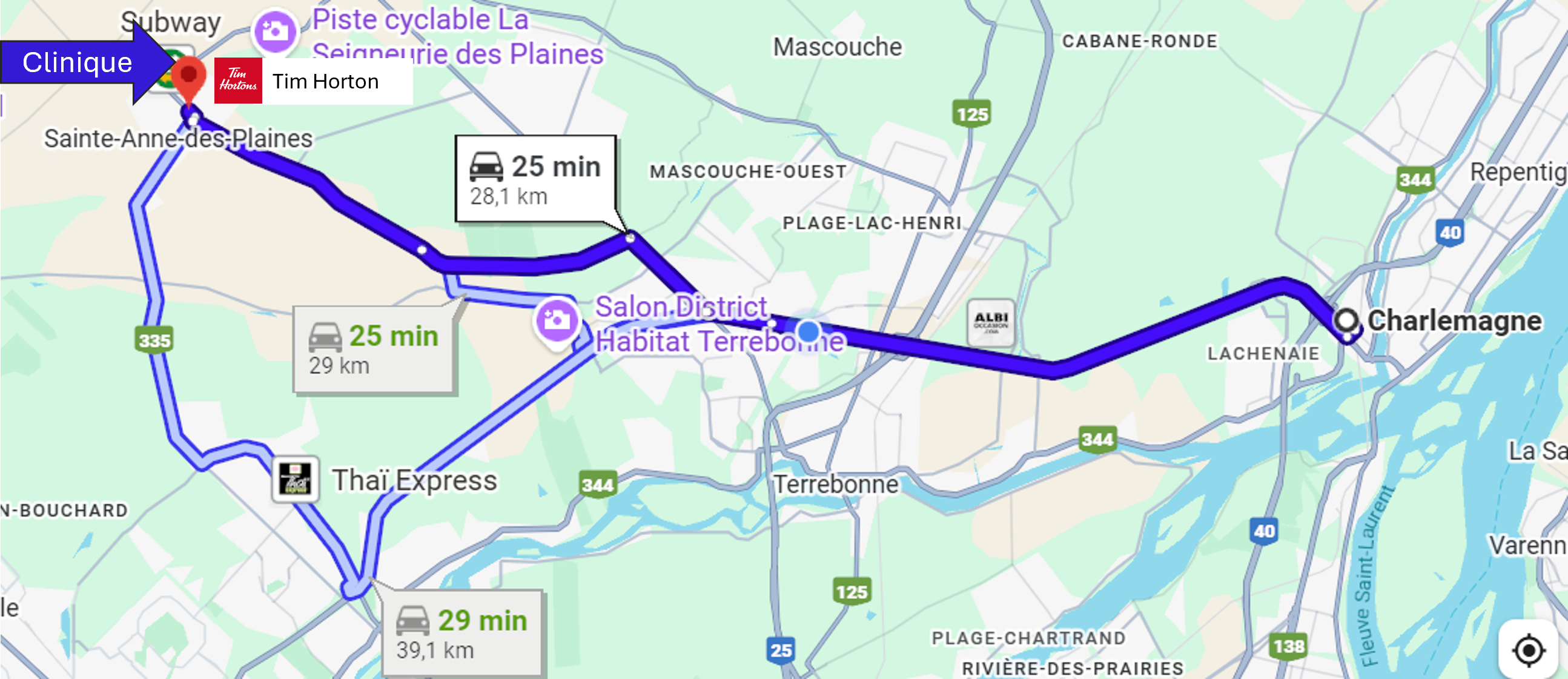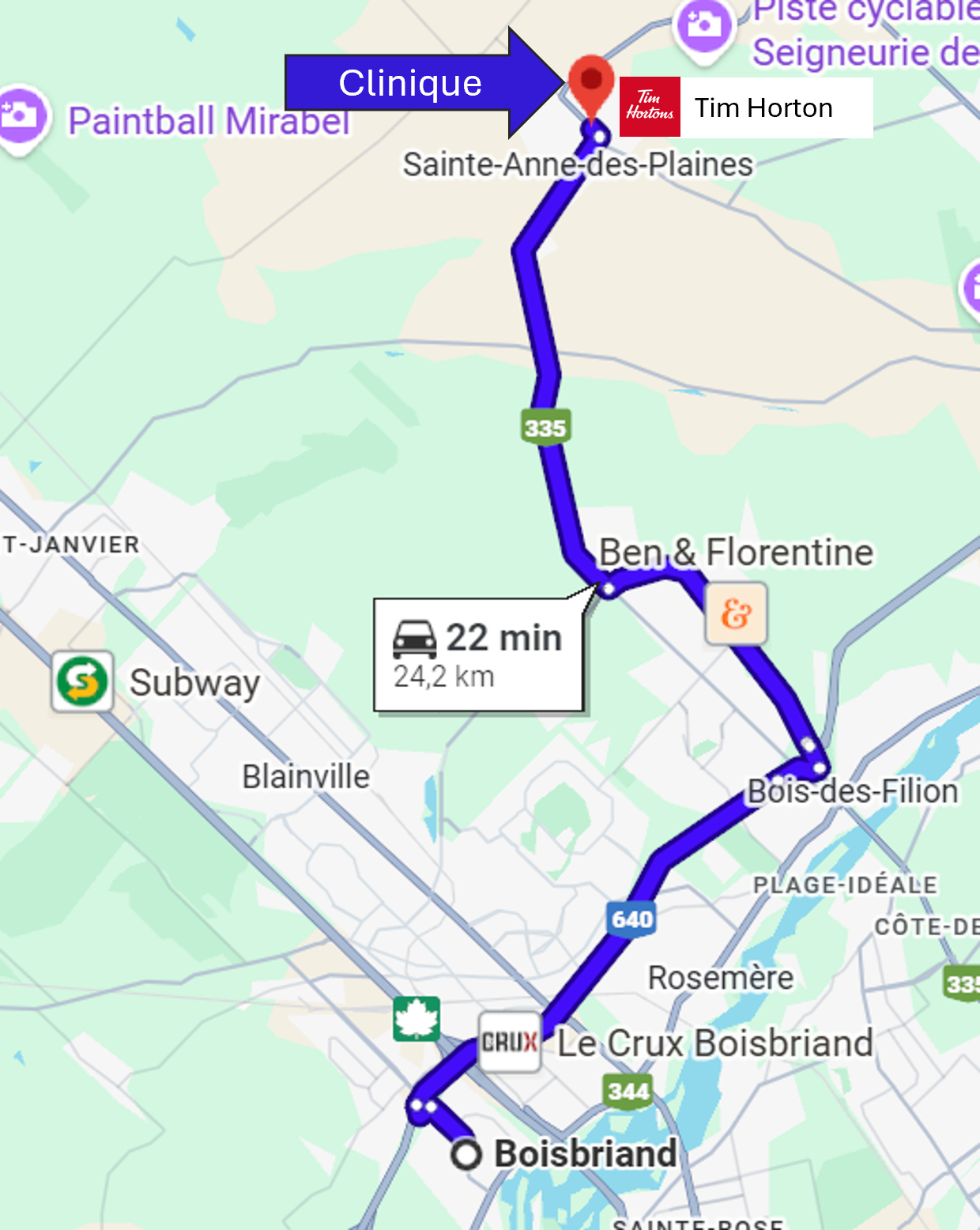 La clinique chiropratique de Dre Nathalie Bessette accueille des patients provenant d'une vingtaine villes et municipalités de la Rive-Nord de Montréal, situées à moins de 30 minutes de route de Sainte-Anne-des-Plaines selon les conditions normales de circulation.