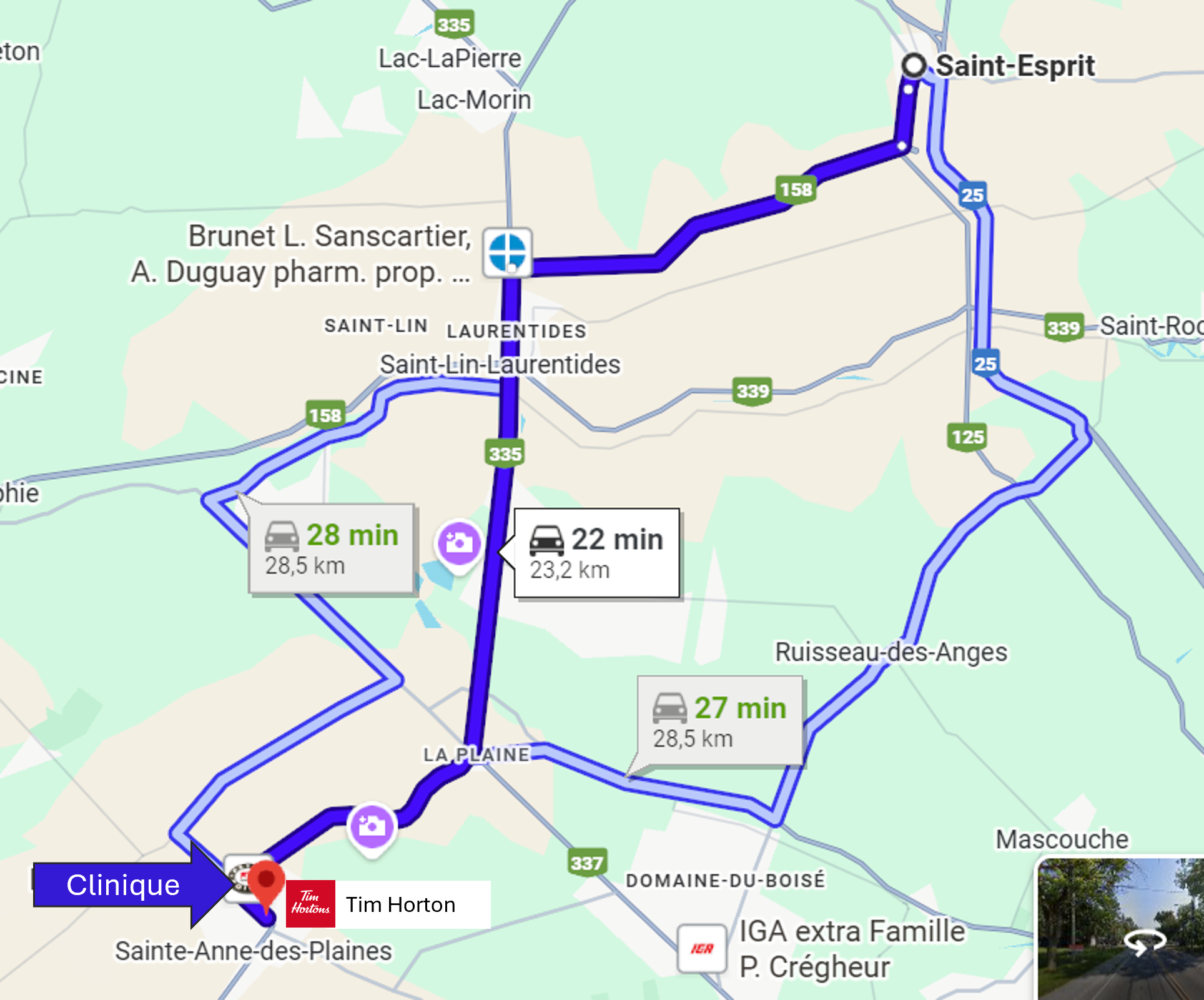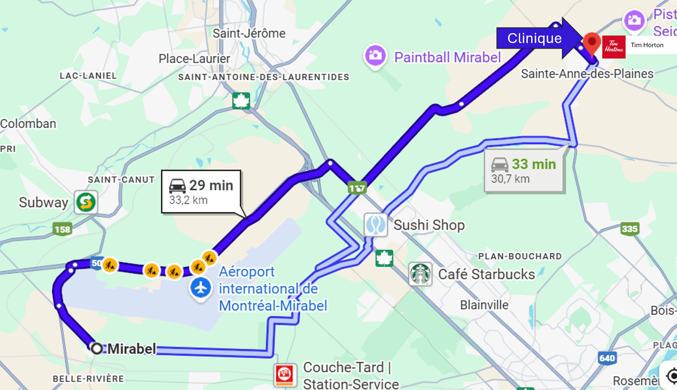 L’accès à la clinique est facilité par les autoroutes 15, 19, 25 et 640 ainsi que les routes 117, 355, 357.
